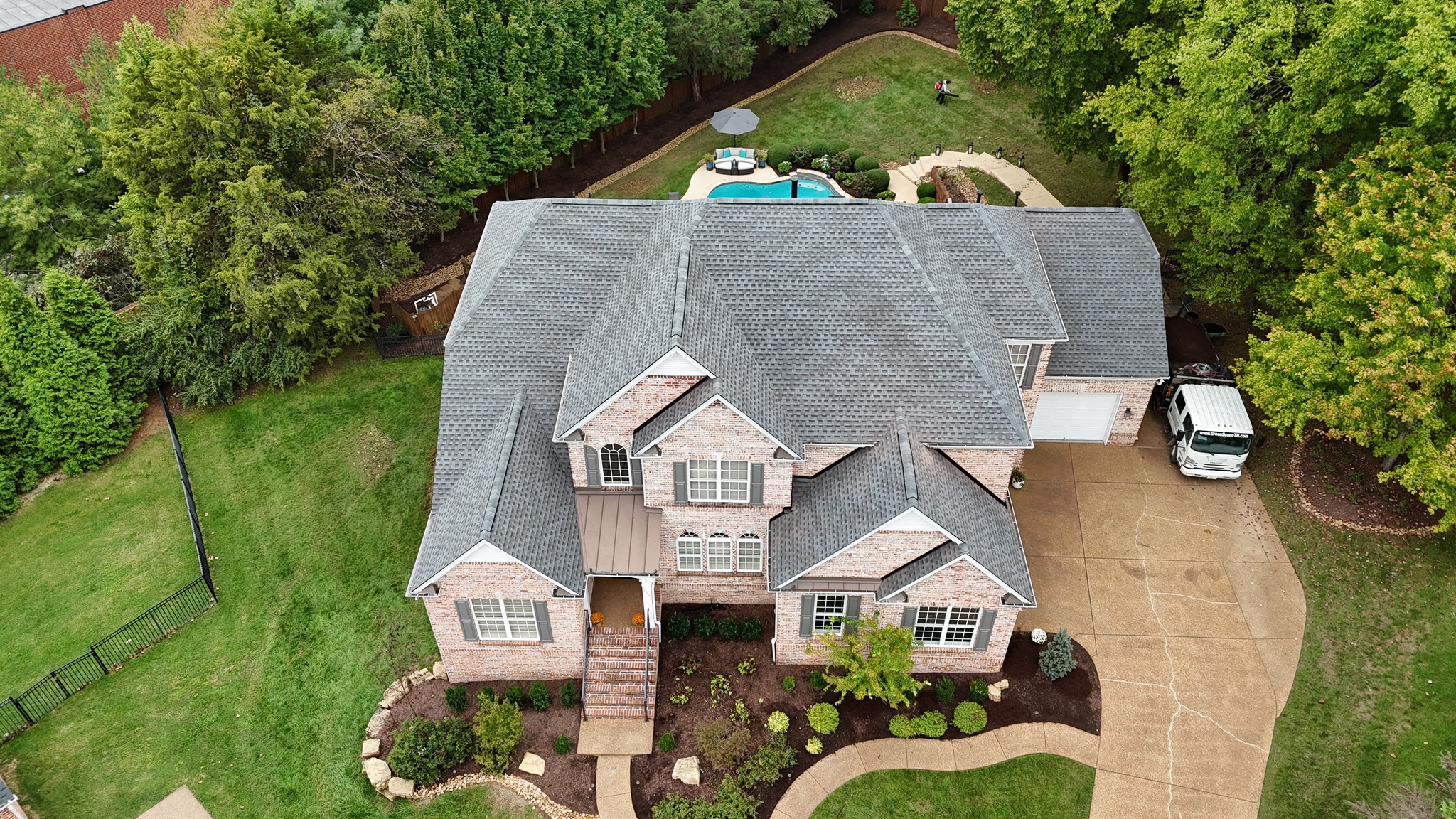 Three Stone installed a new roof featuring GAF Timberline HDZ Weathered Wood shingles.