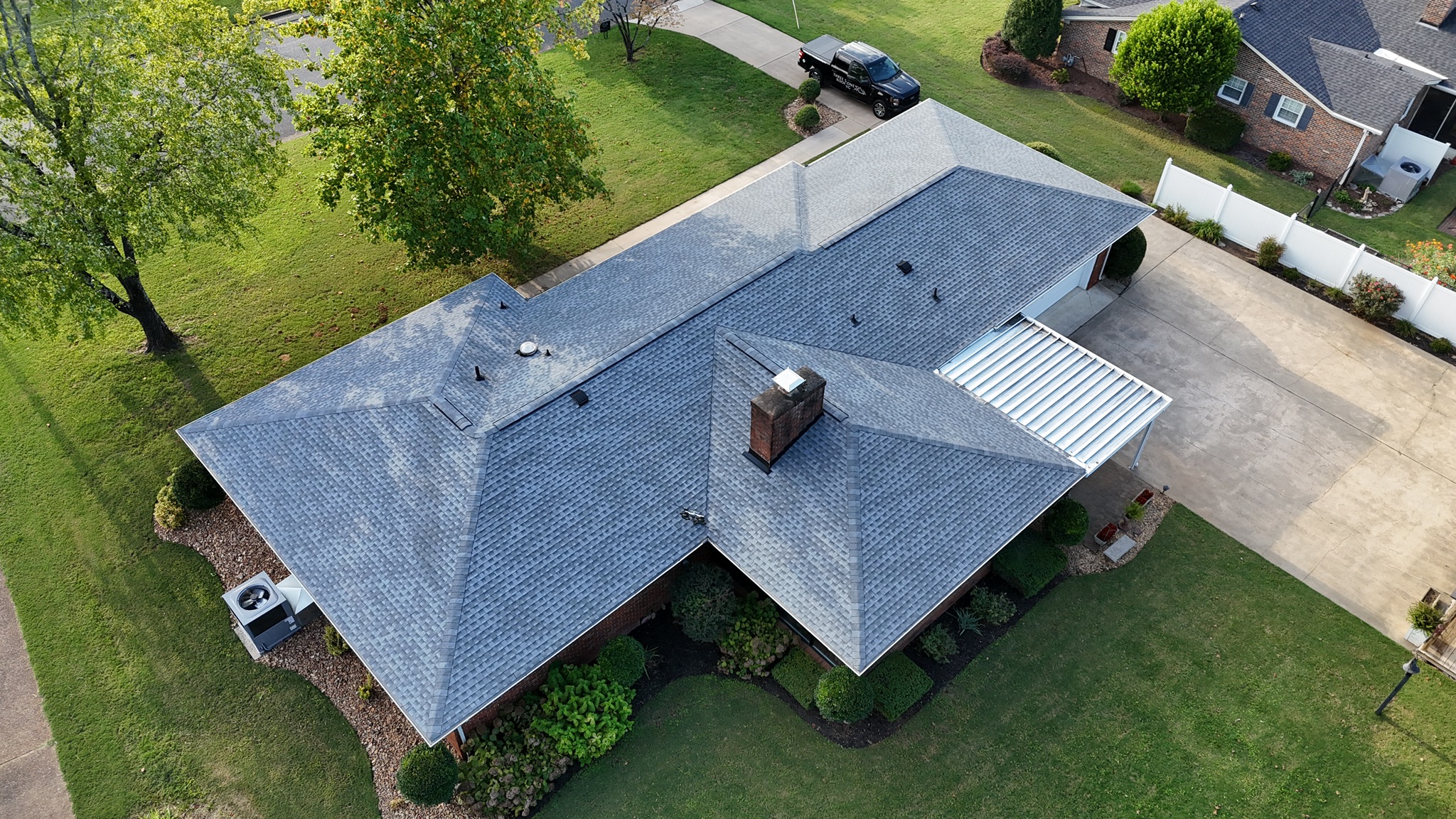 Three Stone installed a new roof featuring GAF Timberline HDZ Weathered Wood shingles.