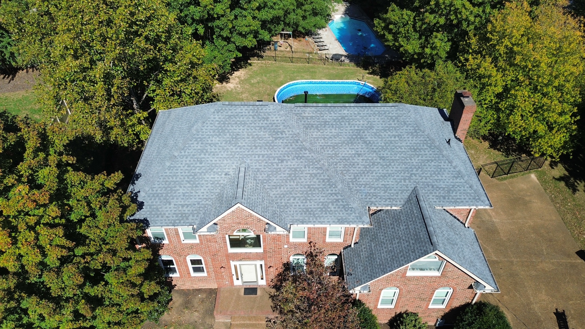 Three Stone installed a new roof featuring GAF Timberline HDZ Weathered Wood shingles.