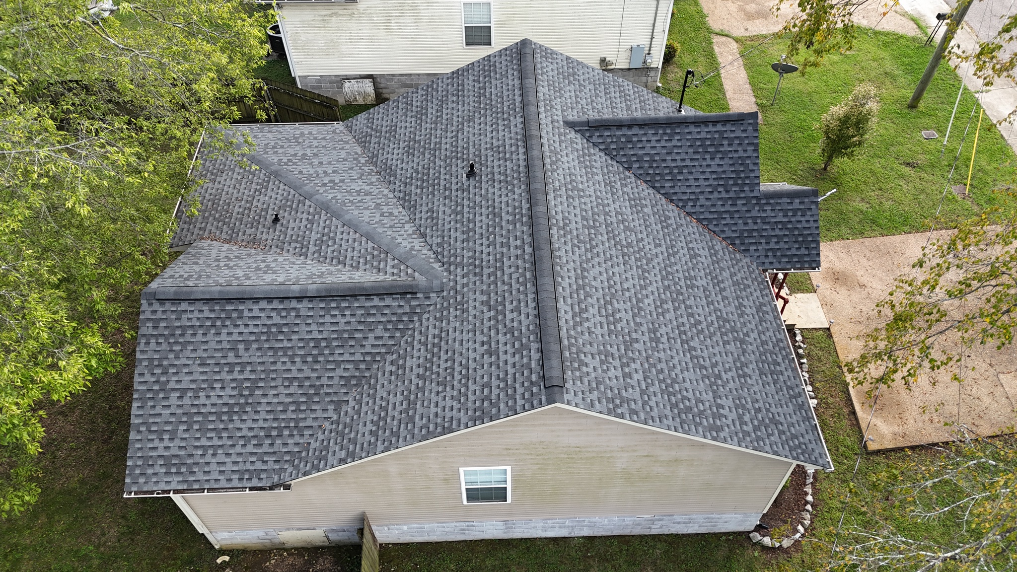 Three Stone installed a new roof featuring GAF Timberline HDZ Charcoal shingles.