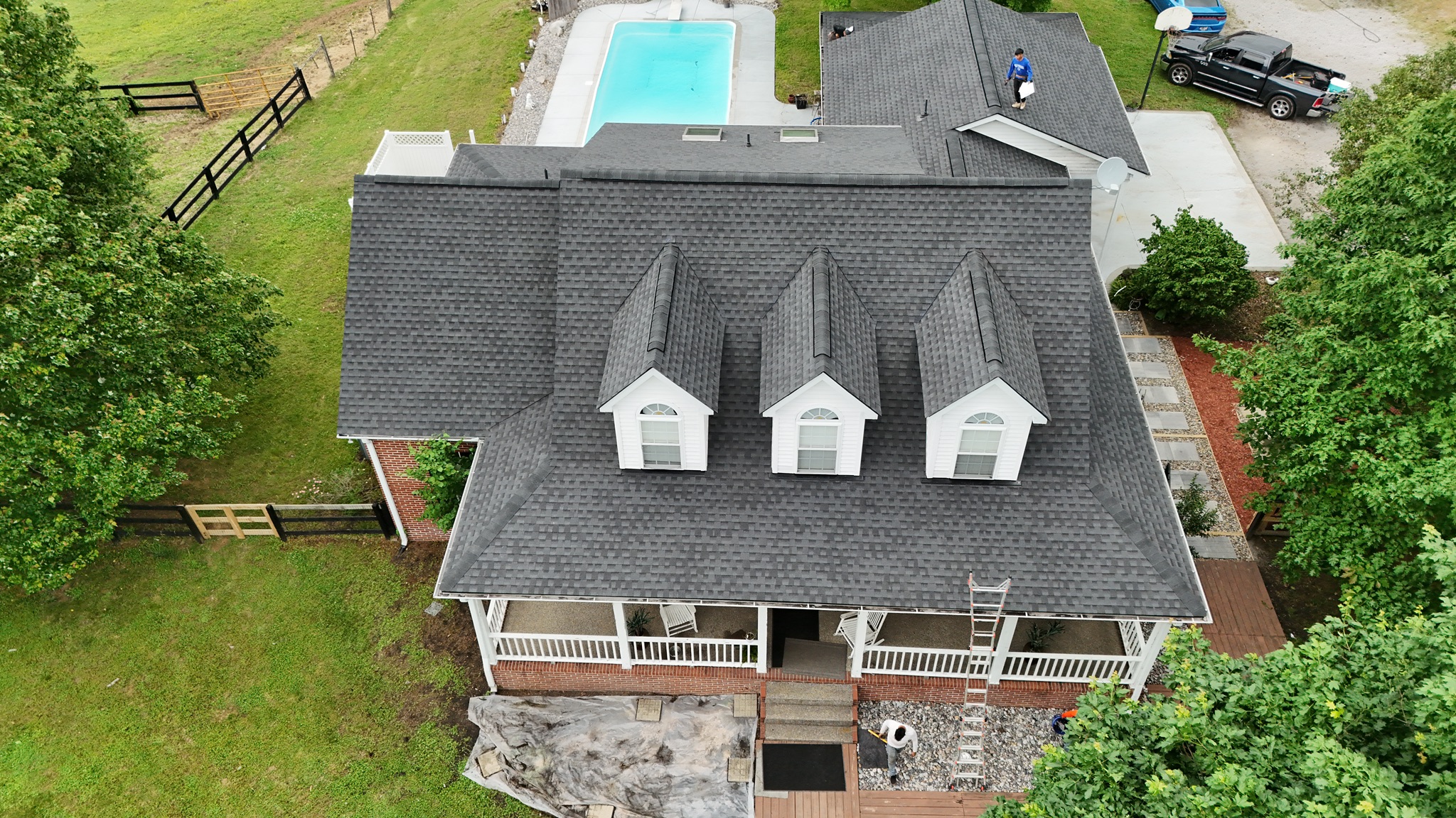Three Stone installed a new roof featuring GAF Timberline HDZ Charcoal shingles.