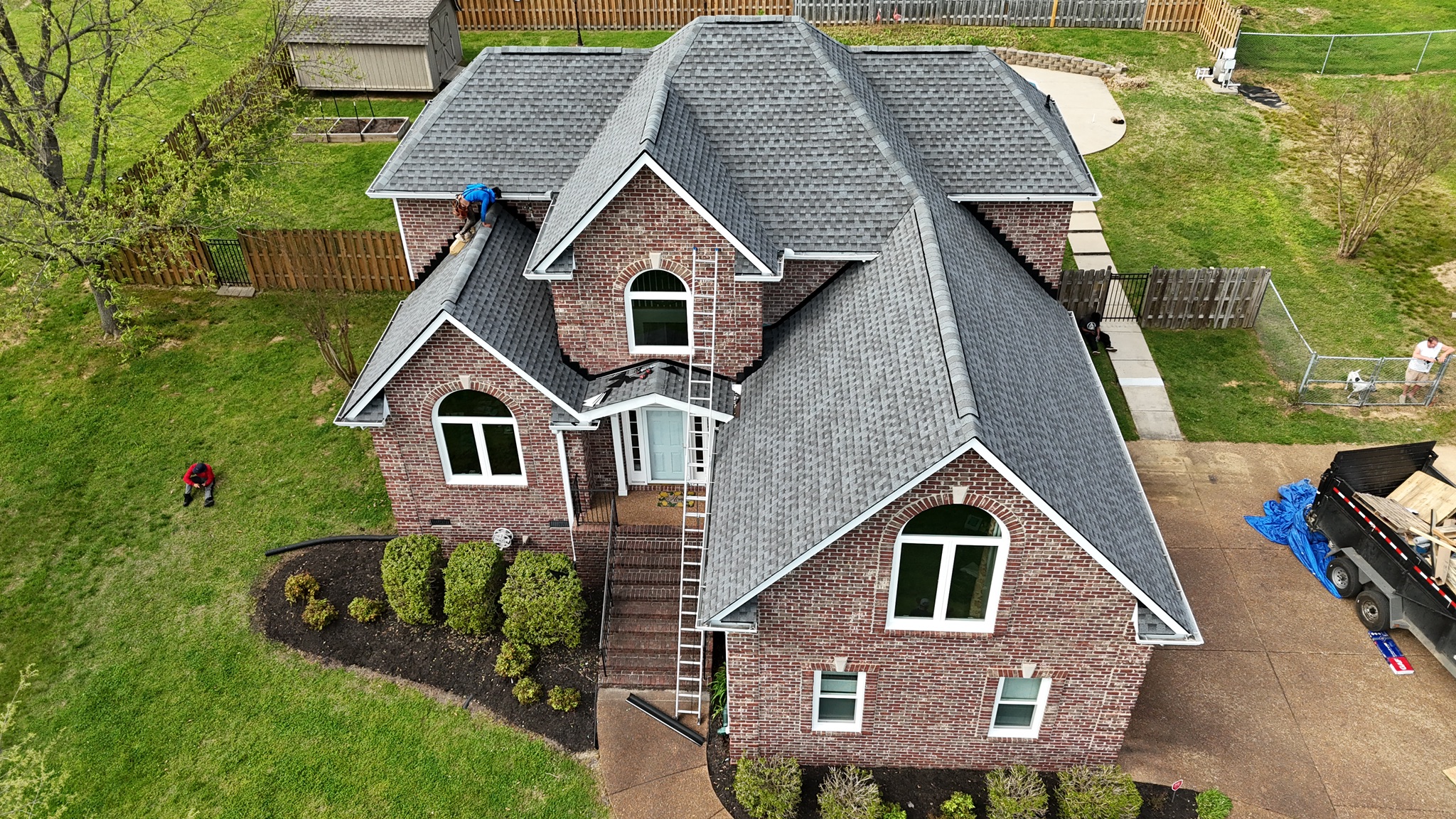 Three Stone installed a new roof featuring GAF Timberline HDZ Weathered Wood shingles.