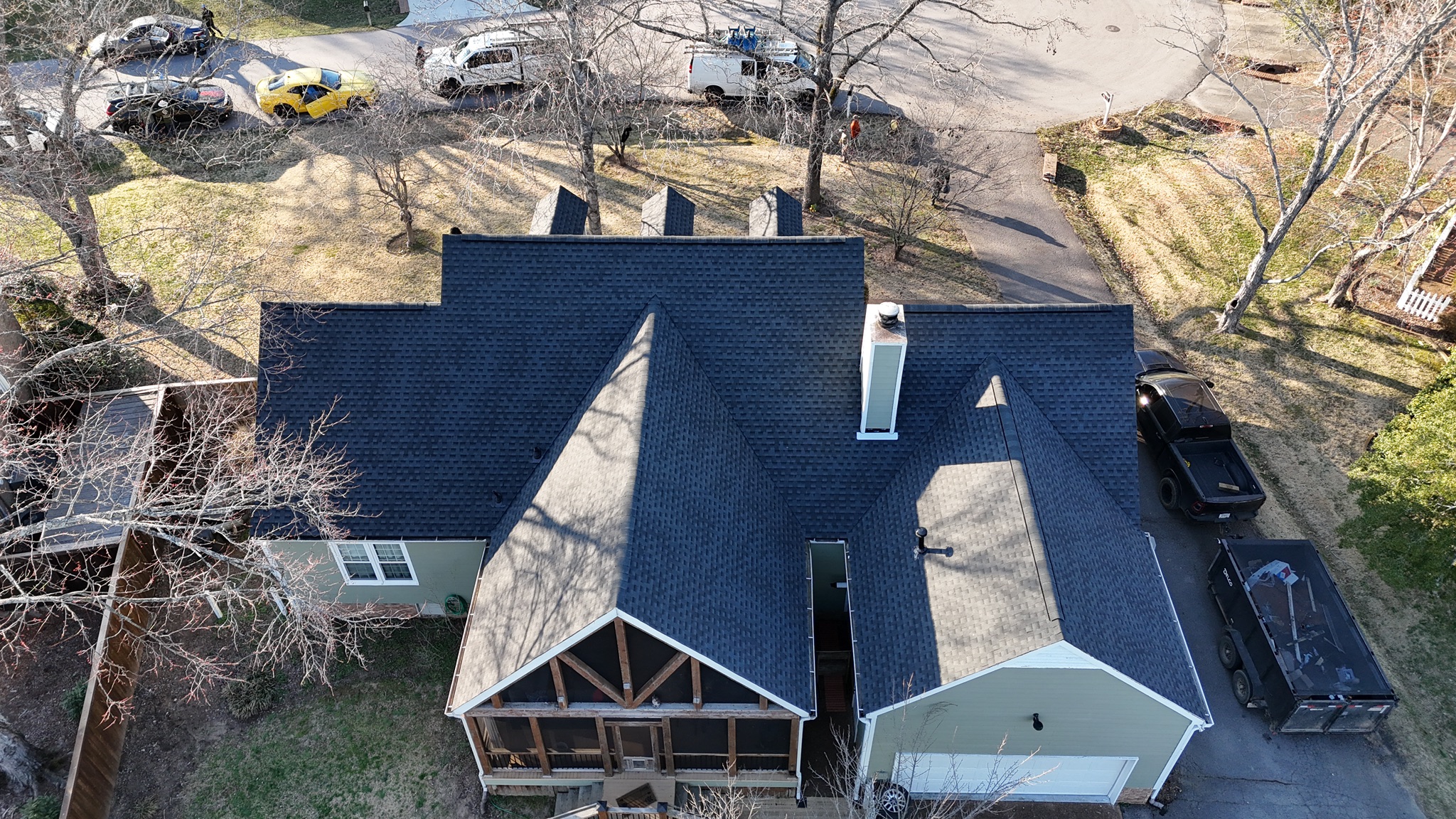 Three Stone installed a new roof featuring GAF Timberline HDZ Charcoal shingles.