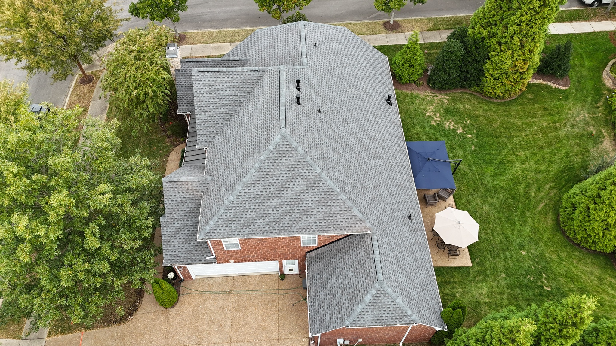 Three Stone installed a new roof featuring GAF Timberline HDZ Weathered Wood shingles.
