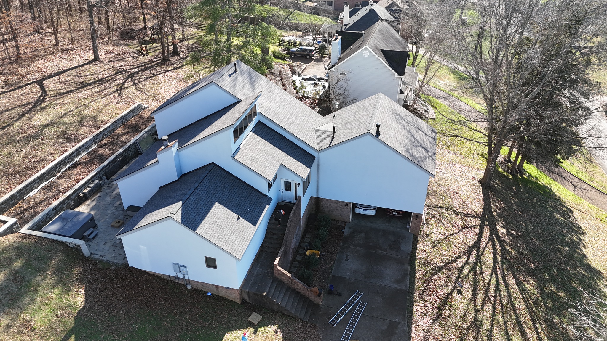 Three Stone installed a new roof featuring GAF Timberline HDZ Weathered Wood shingles.
