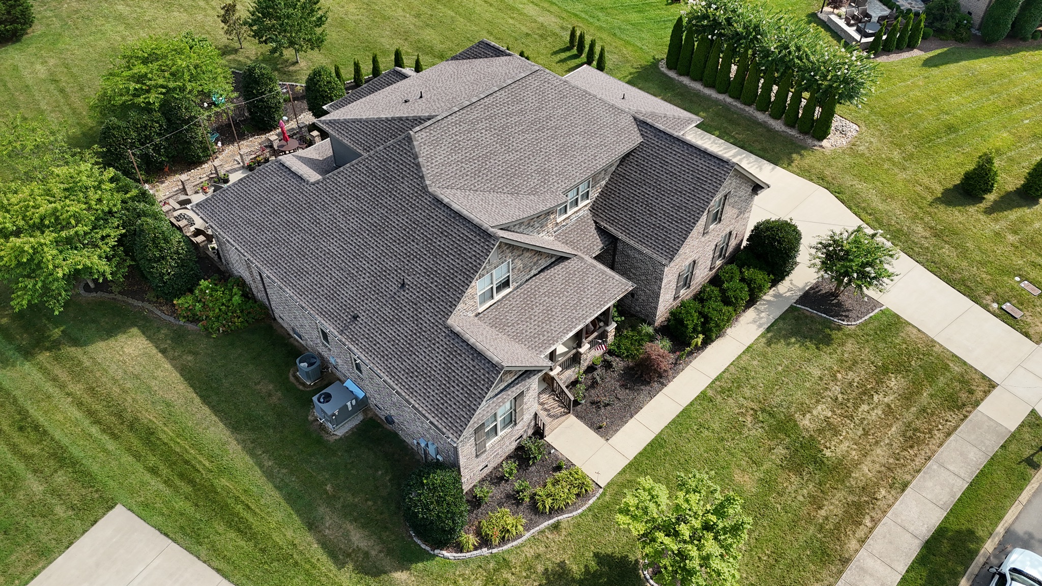Three Stone installed a new roof featuring GAF Timberline HDZ Weathered Wood shingles.