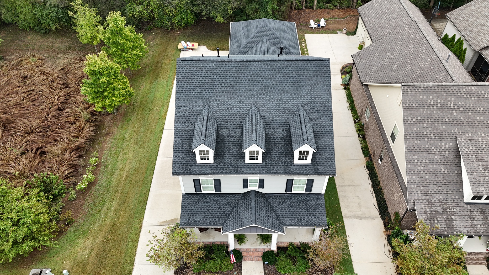 Three Stone installed a new roof featuring GAF Timberline HDZ Hickory shingles.