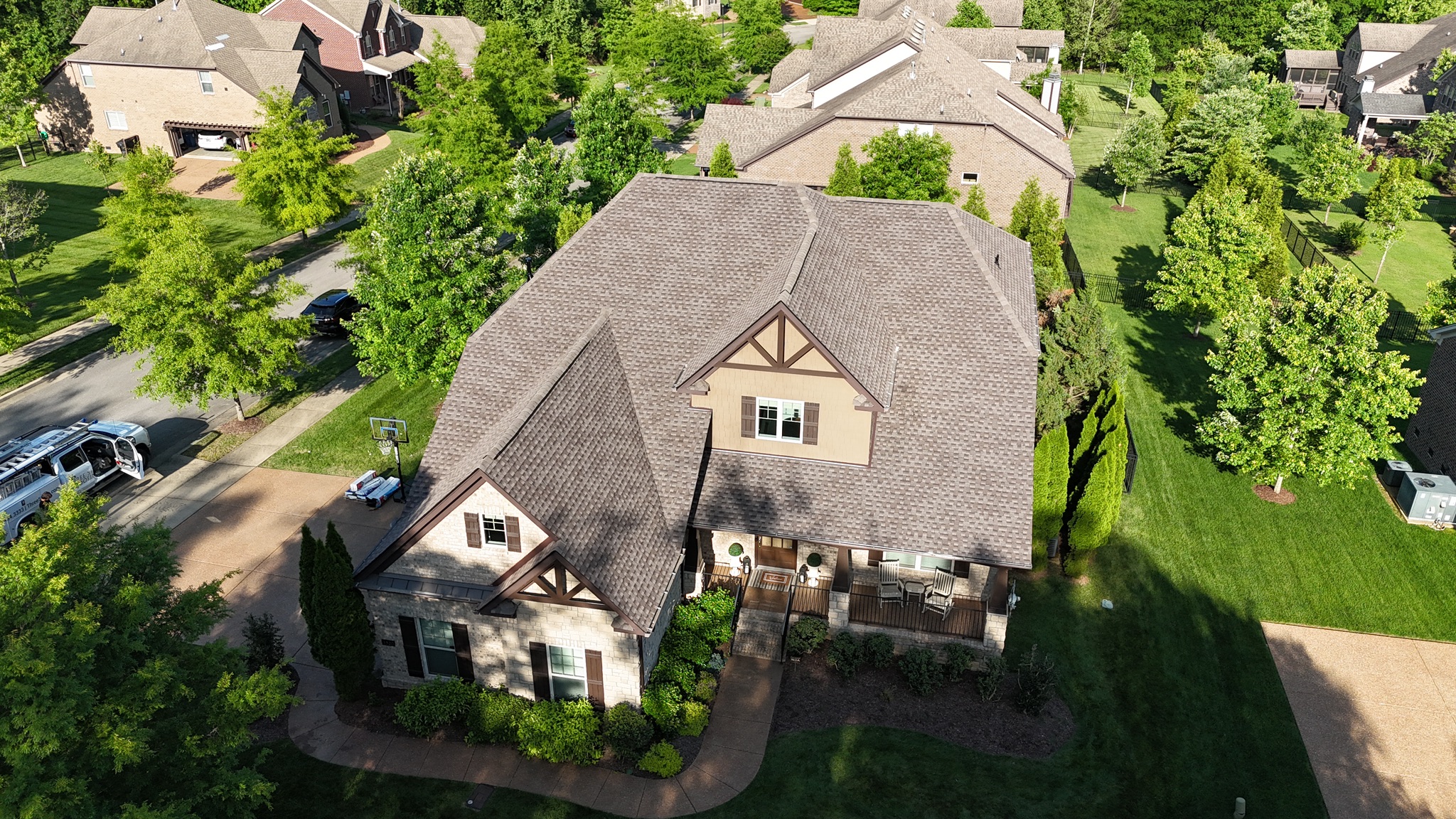 Three Stone installed a new roof featuring GAF Timberline HDZ Weathered Wood shingles.