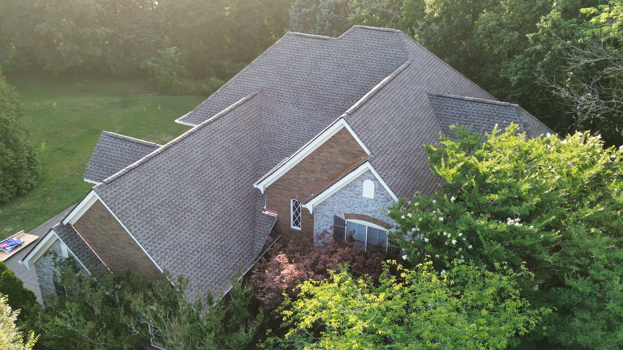 Three Stone installed a new roof featuring GAF Timberline HDZ Weathered Wood shingles.