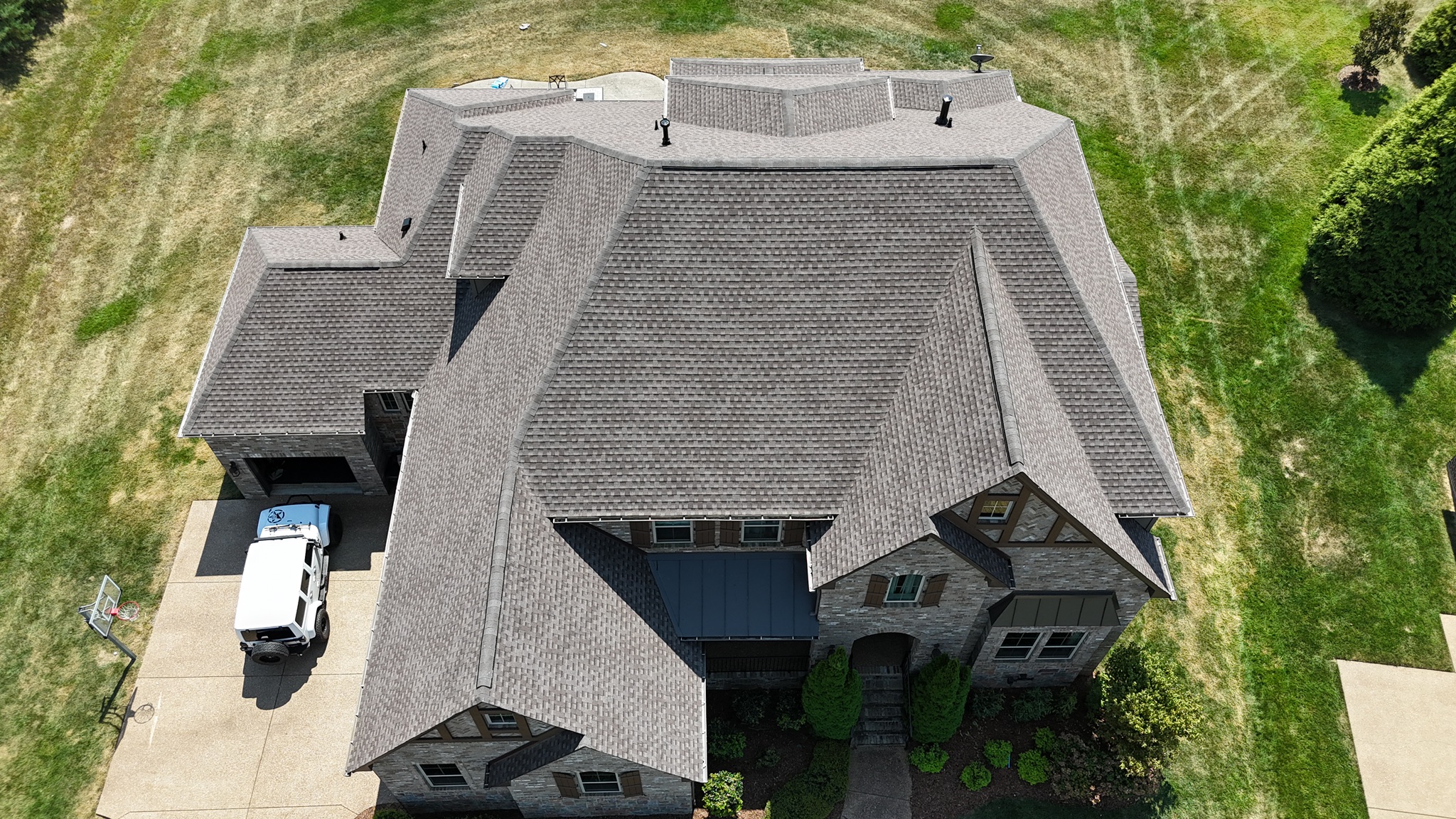 Three Stone installed a new roof featuring GAF Timberline HDZ Weathered Wood shingles.
