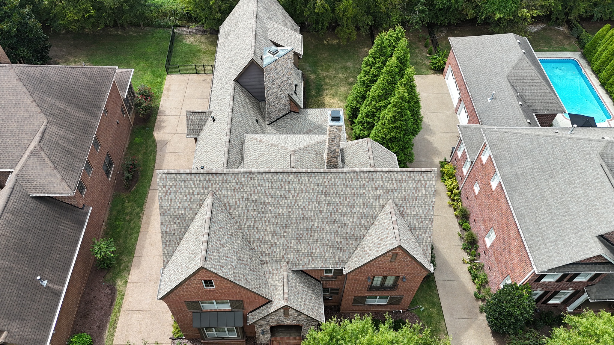 Three Stone installed a new roof featuring GAF Timberline HDZ Pewter Gray shingles.