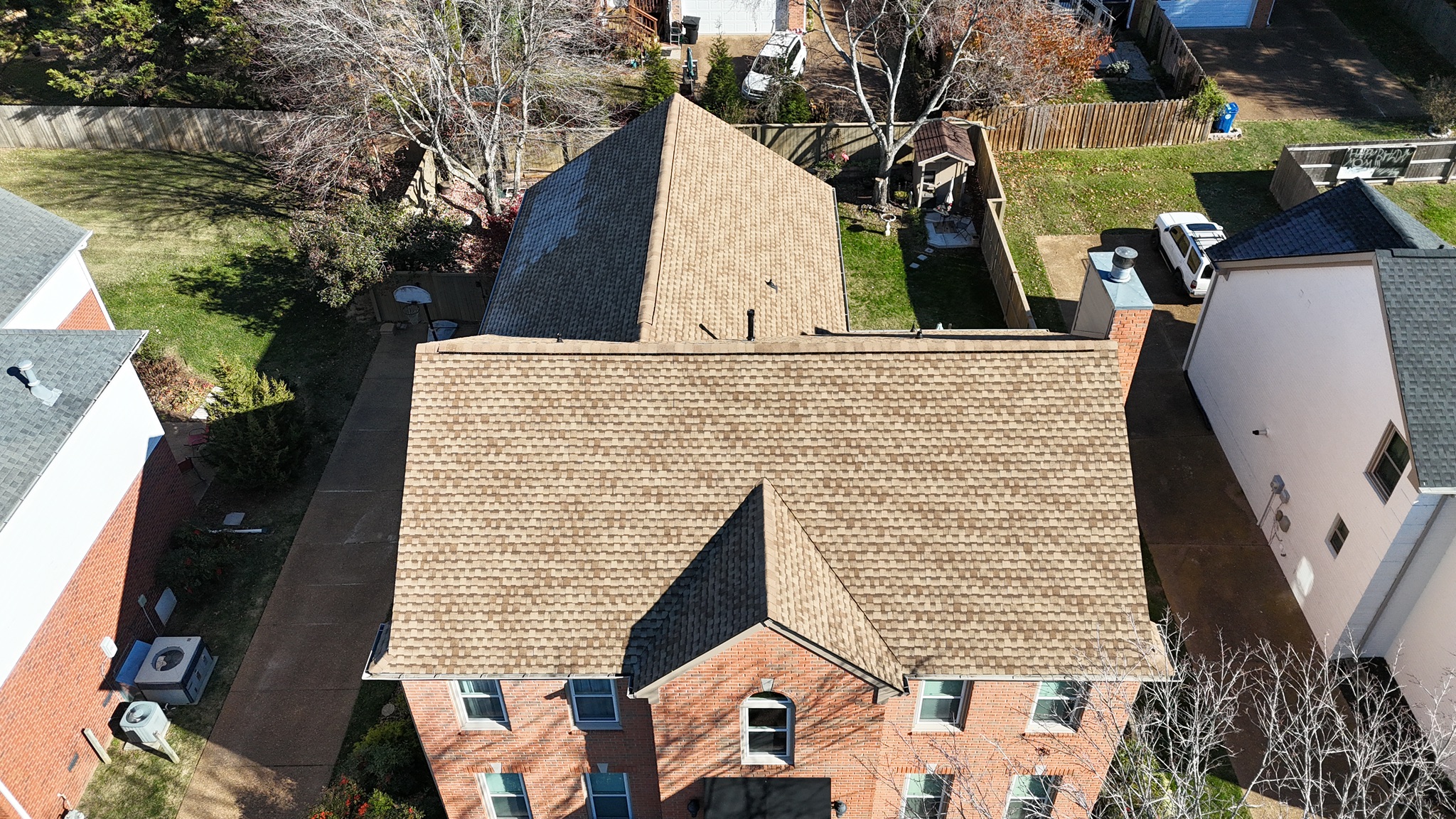Three Stone installed a new roof featuring GAF Timberline HDZ Weathered Wood shingles.