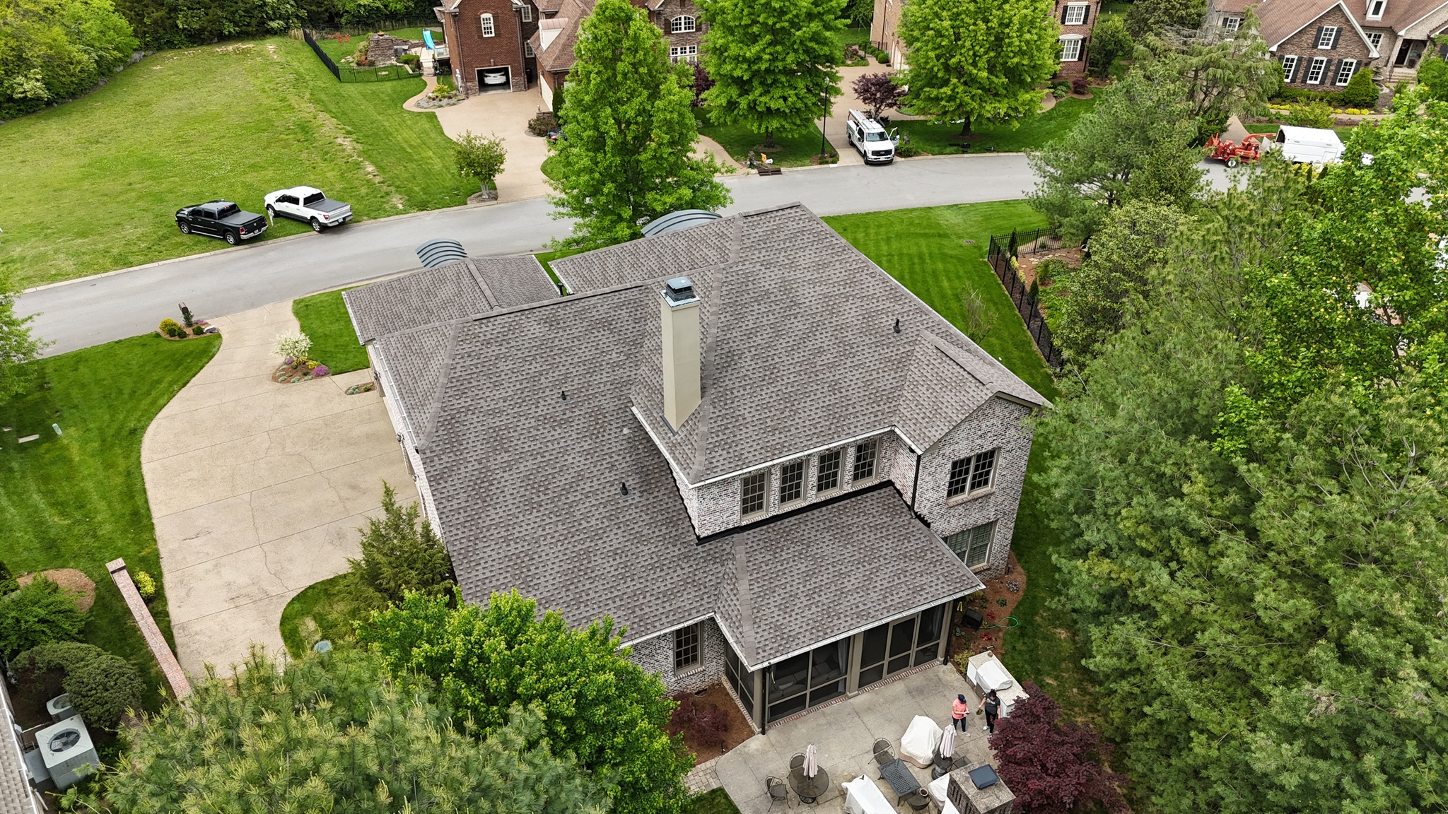 Three Stone installed a new roof featuring GAF Timberline HDZ Weathered Wood shingles.