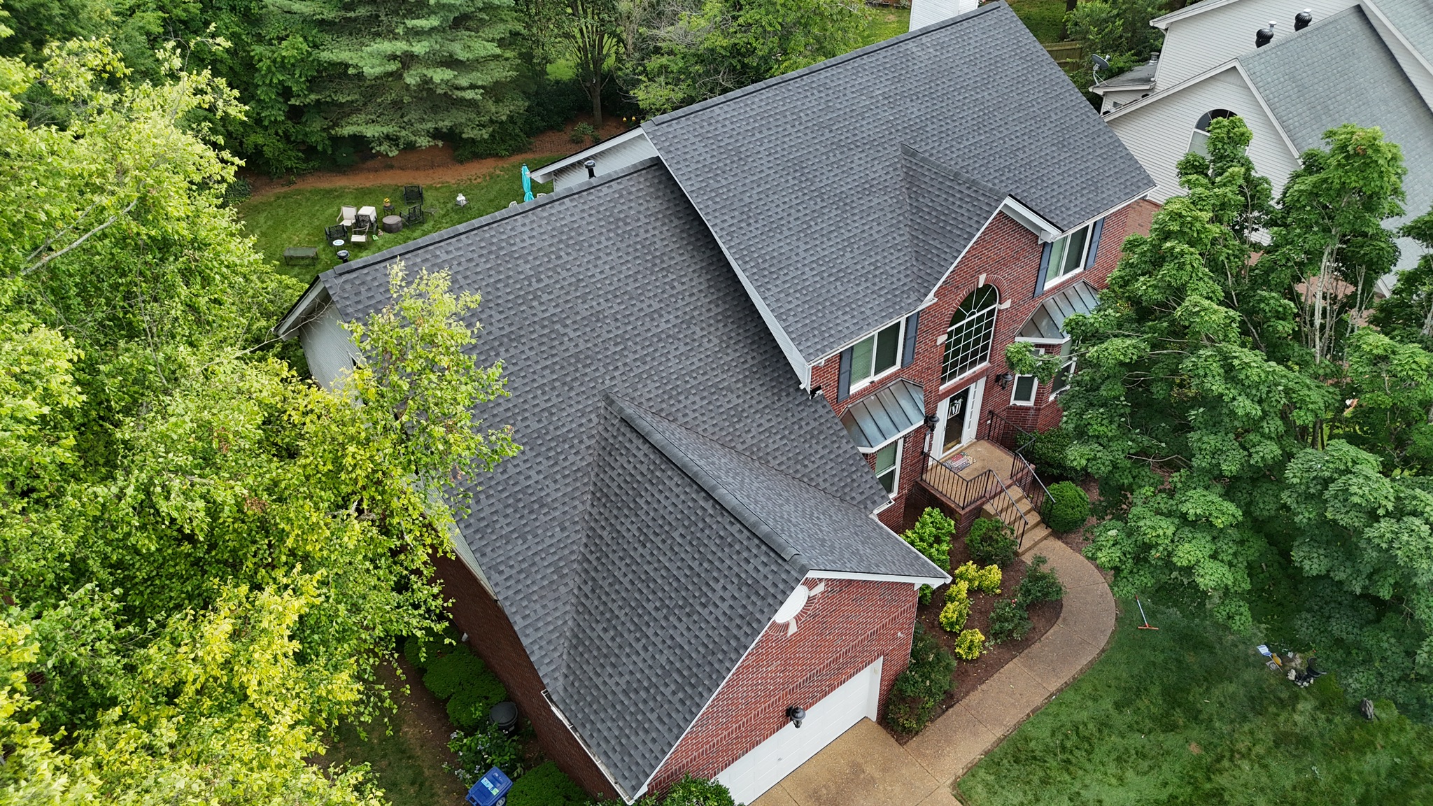 Three Stone installed a new roof featuring GAF Timberline HDZ Pewter Gray shingles.
