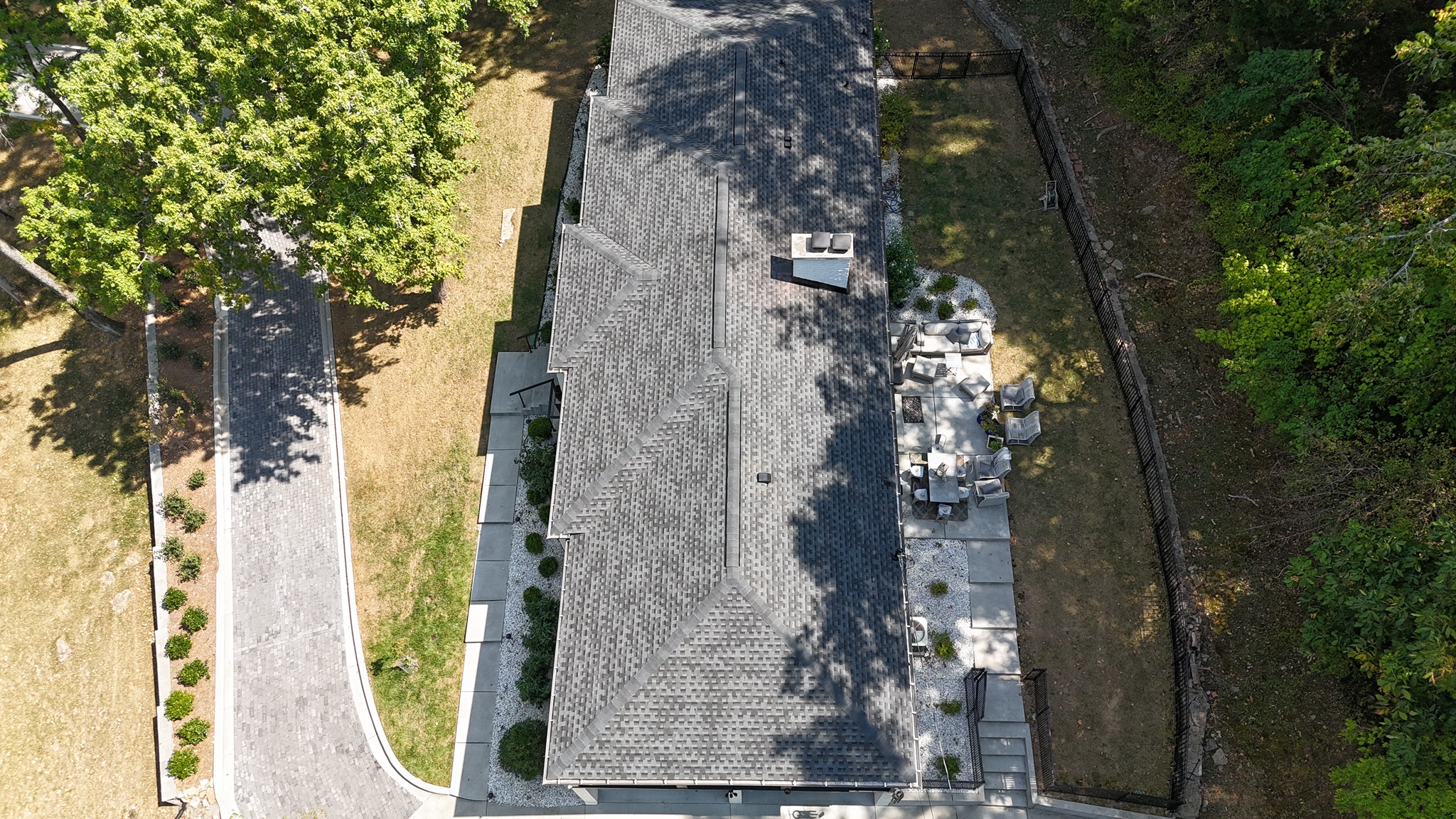 Three Stone installed a new roof featuring GAF Timberline HDZ Pewter Gray shingles.